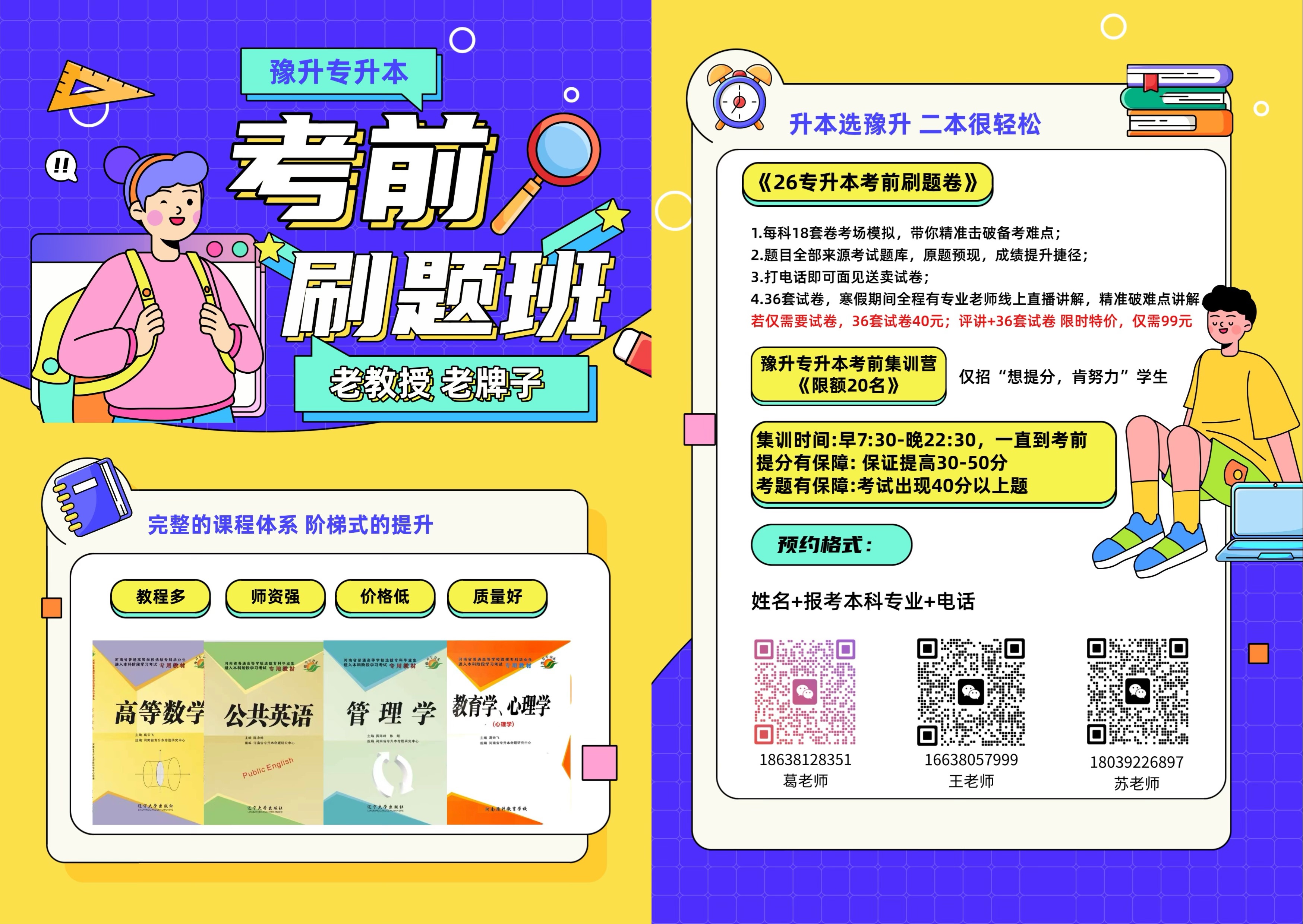 还在为专升本备考抓瞎?想短时间提分 30-50 分?豫升专升本考前刷题班直接帮你拿捏上岸密码!